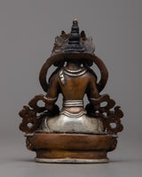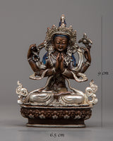 The gorgeous images of respected Bodhisattvas in the Machine Made Bodhisattva Statues Set are expertly produced using machine processes. Every statue has a body composed of oxidized copper plated in silver, which highlights the figures' fine details and produces a dramatic contrast. This set, which weighs 1.10 kg in total, is the ideal complement to any Buddhist altar, shrine, or meditation area since it radiates elegance and sacredness.
