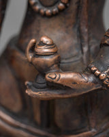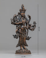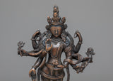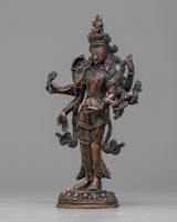 The Amoghapasha Lokeshvara Statue, which is 20 centimeters tall and carefully fashioned from oxidized copper, is a powerful representation of compassion and enlightenment. This statue is a highly revered image of the Bodhisattva of Infinite Compassion, Lokeshvara, and it emanates a feeling of spiritual grace and heavenly presence.