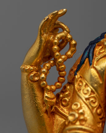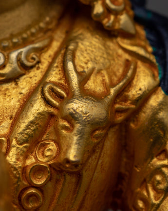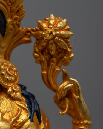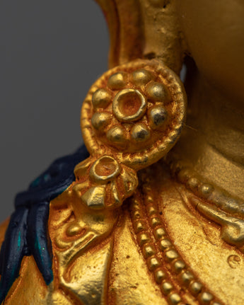 This Avalokiteshvara statue's experienced artisans have poured their talents into every detail, infusing it with complex carvings, bright hues, and a sense of divine energy. The statue's beauty and spiritual importance are enhanced by the mix of 24k gold gilding, 24k gold and acrylic paintwork, and the copper body. Every part of the statue, from the calm countenance to the soft posture, depicts Avalokiteshvara's loving energy and the transformational power of kindness.