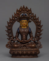 Amitayus, often known as "The Buddha of Endless Life," is a sambhogakaya aspect of Amitabha, commonly linked with longevity. He is frequently depicted reclining and holding a vase with the nectar of immortality. One of the three gods of immortality, Amitayus is one of the three gods of immortality.