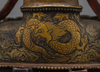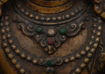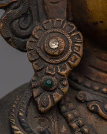 Introducing the exquisite Chenresig Bodhisattva Statue, skillfully handcrafted on a copper body with a captivating antique finishing style. This beautifully crafted statue depicts Chenresig, the embodiment of compassion, in all its grace and magnificence. The artisans have paid meticulous attention to every detail, capturing the serene expression and gentle posture of the deity. The antique finish adds a touch of timeless elegance and showcases the rich cultural heritage associated with Chenresig.