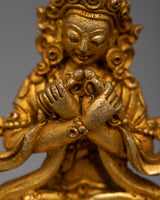 Featuring the Bodhisattva Statue Set, a collection of magnificent sculptures painstakingly made to capture the essence of compassion and wisdom. Each statue in this collection is machine-made on copper bodies and plated with luxurious 24k gold, ensuring both longevity and aesthetic grandeur. The set is 6 cm in height and 4 cm in breadth and weighs 0.37 kg, making it a significant addition to any sacred space or altar.