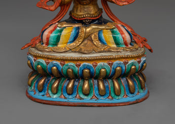 This statue has been lovingly sculpted down to the last detail, including the elaborate patterns on his robes and the serene smile on Chenrezig's face. The sculpture has been given elegance and spiritual meaning by the artists' thorough attention to detail. In addition to signifying the sacredness of Chenrezig, the gold gilding highlights the artists' skilled work. For those looking for a work of art that captures the spirit of kindness and peaceful spirituality, this statue is perfect.
