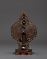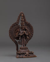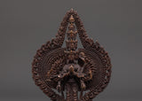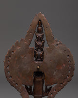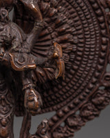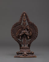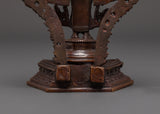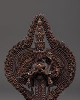 This gorgeous 1000-Armed Chenresig Statue is 19.5cm tall and 12cm wide, made of oxidized copper, and will add a classic, religious sense to your spiritual environment. The statue depicts Tibetan Avalokiteshvara, the Bodhisattva of Compassion, with a thousand arms representing boundless kindness and protection. This statue, weighing 0.64 kg, features precise details that showcase traditional craftsmanship, making it an ideal focal point for meditation altars, spiritual décor, and mindfulness practices. The statue's corroded copper surface lends it a truly vintage look, making it appealing to collectors and devotees alike.