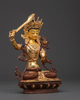 Gold Plated Manjushri Statue | Buddhist Wisdom Figurine