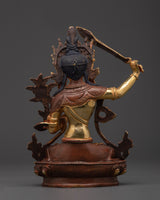 Elevate your sacred space with this gold-plated Manjushri Statue, a stunning representation of the Tibetan deity of transcendent wisdom. Measuring 22.5 cm in height and 17 cm in width, this handcrafted statue is intricately sculpted from copper and adorned with gold plating. Displaying this statue in your holy area encourages mental attention, breaks down conceptual boundaries, and encourages skillful speech.