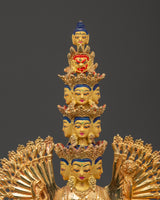 Copper Gold Plated Thousand Armed Chenrezig Statue | Copper with Gold Plating