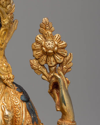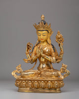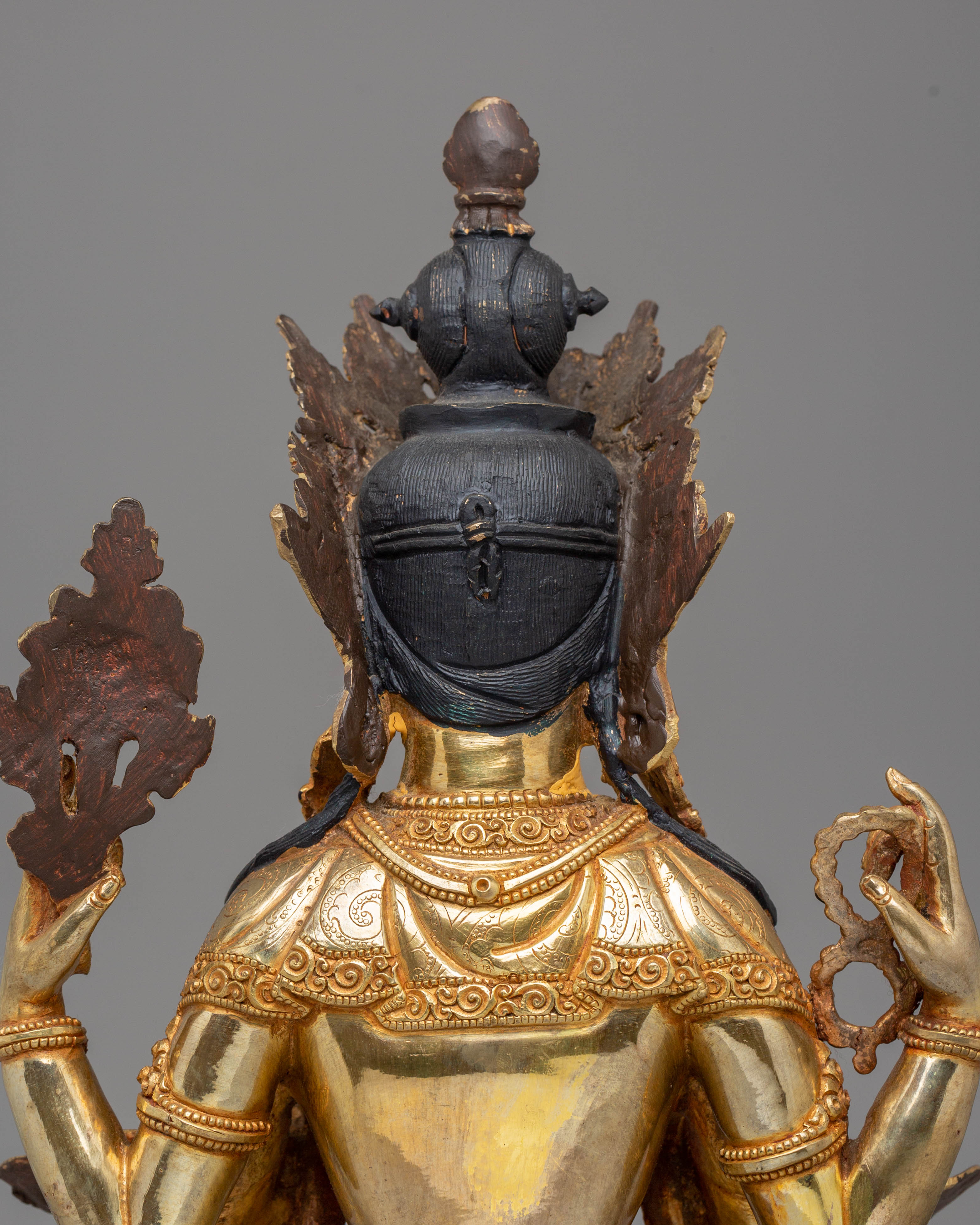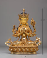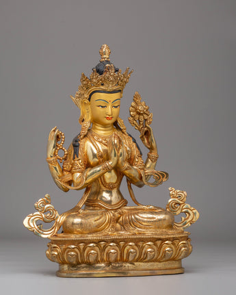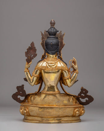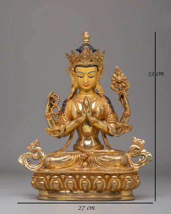 Handcrafted Copper Statue of Chenrezig with 24K Gold Gilding