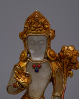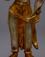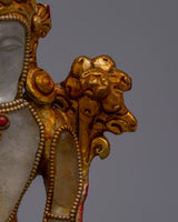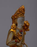 The Lokeshvara Bodhisattva Statue represents Avalokiteshvara's compassionate and merciful virtues, the Bodhisattva of Compassion. This statue is handcrafted with meticulous attention to detail and stands on copper, ensuring durability and a sense of traditional craftsmanship. It is adorned with crystal stones and exudes spiritual energy, encouraging practitioners to connect profoundly with Avalokiteshvara's caring spirit.