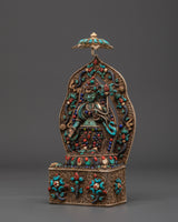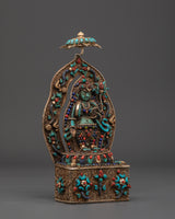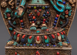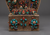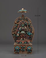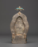 Expertly handcrafted by Himalayan artisans, the piece features exquisite detailingfrom the serene expression to the finely crafted ornaments. The gold plating symbolizes the radiance of enlightenment, while the copper base ensures strength and durability. The inlaid semi-precious stones add both color and sacred meaning, making this sculpture a powerful addition to any altar, shrine, or meditation space. Perfect for practitioners and collectors alike, it serves as a daily reminder of compassion, empathy, and spiritual connection.