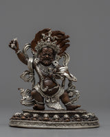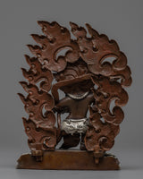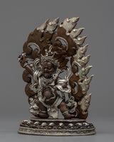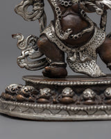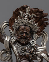 The magnificent Machine-Made Vajrapani Statue embodies the will and fortitude to conquer challenges on the way to enlightenment and is a manifestation of Vajrapani's strength and protection. This precisely crafted statue has an oxidized copper body with electro silver plating that highlights its fine details and symbolic meaning. Measuring 16 centimeters, it is a focal point for meditation and introspection, attracting respect and attention.