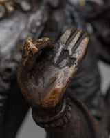 With our exquisitely crafted Manjushri Copper Statue, gilded in 24k gold, you can embrace the embodiment of transcendent wisdom. This statue, standing 14.5 cm tall, is a priceless work of spiritual art that symbolizes Manjushri's enlightened wisdom that penetrates ignorance.