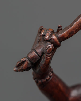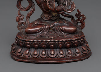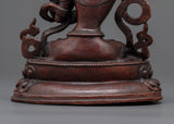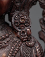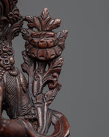 Introducing our Manjushri Small Handmade Statue, beautifully created in Patan, Nepal. This gorgeous sculpture, which is made of fine oxidized copper with an antique finish, is a perfect representation of the ancient metalworking legacy of Nepal. Manjushri, the symbol of knowledge and enlightenment, is shown in a calm, contemplative pose. The rich details and antique finish give the portrayal a timeless spiritual depth.