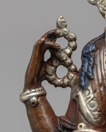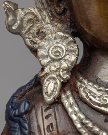 Our Namo Avalokiteshvara Chenrezig statue is a classic Buddhist design that measures 22cm x 15cm and is made of copper body with silver plating. Its elaborate features demonstrate excellent craftsmanship, with a tranquil a mindset and posture that make it a lovely centrepiece for meditation or décor. It embodies the ideals of kindness, empathy, and love as a sign of compassion. Add this wonderful piece of artwork to your collection or give it as a gift to someone who appreciates Buddhist tradition and culture.