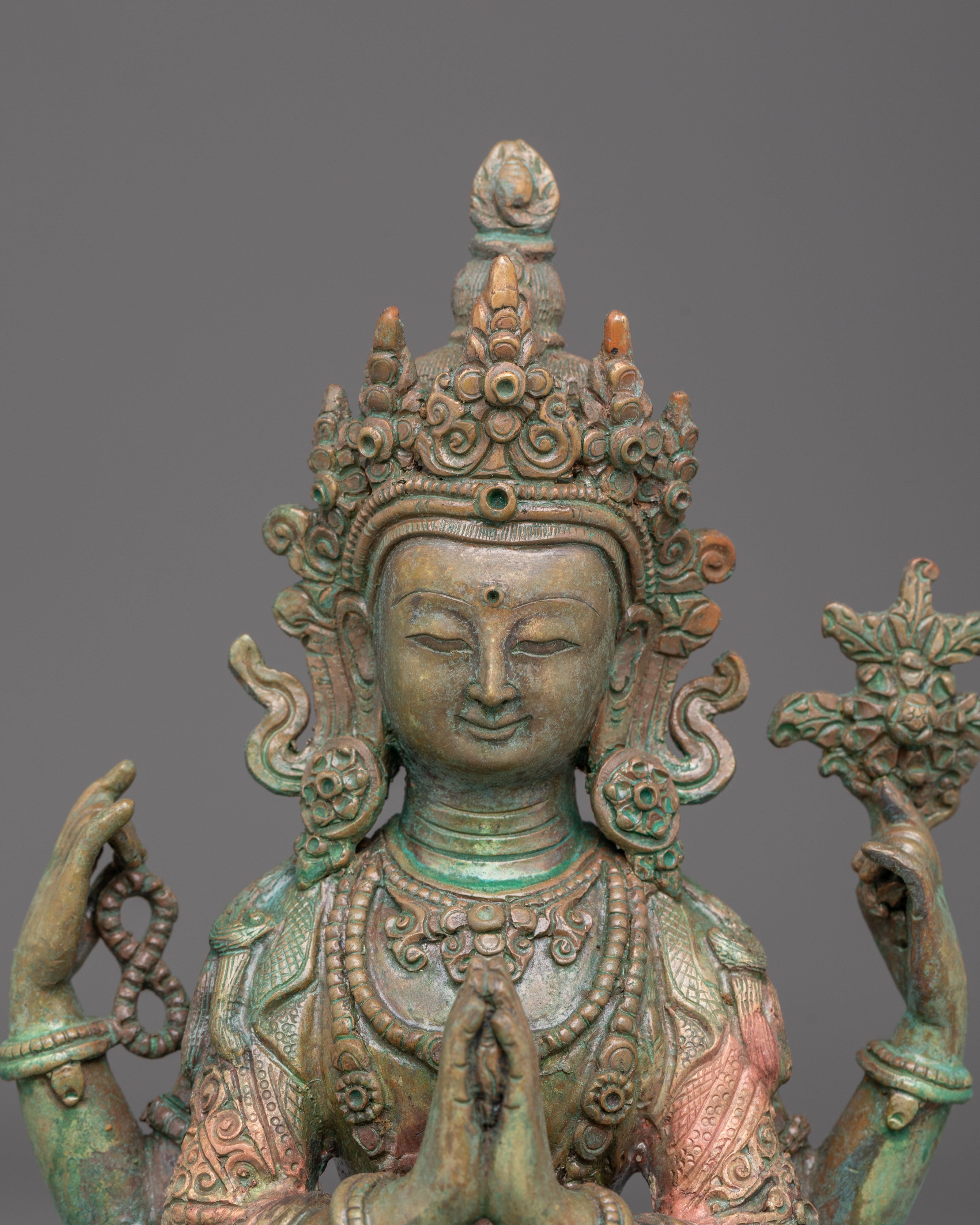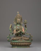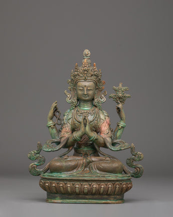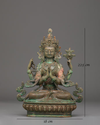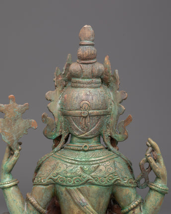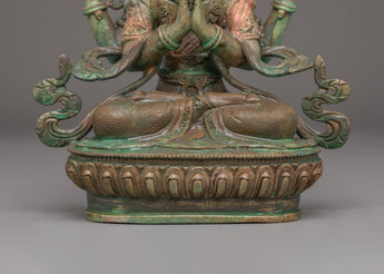 Oxidized Copper Statue of Chenrezig | The Compassionate Bodhisattva
