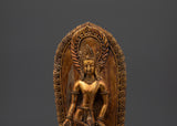 This Padmapani statue, perfect for personal altars, meditation rooms, or as a thoughtful gift, adds warmth and spiritual energy to any setting. Its size allows for a variety of display configurations, and the gold-plated finish adds to its aesthetic and religious significance.
