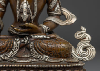The copper finish adds a warm, mature appearance to the item, while the gentle golden accents highlight Amitayus' enlightened nature. Ideal for individuals seeking spiritual refreshment, healing blessings, or honoring the Buddha of Infinite Life.