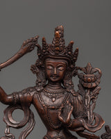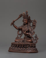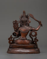 Sacred Manjushri Sculpture | Oxidized Copper Buddhist Bodhisattva of Wisdom
