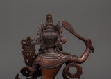 Sacred Manjushri Sculpture - Oxidized Copper Buddhist Bodhisattva of Wisdom