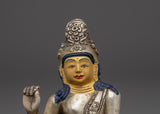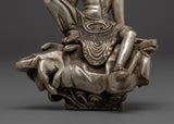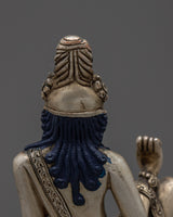 This Buddhist sculpture of Lokeshvara is more than just a work of beauty; it is a sacred item that represents Avalokiteshvara's promise to end suffering for all living things. This silver-plated Avalokiteshvara statue adds Buddhist symbolism and cultural depth to your altar, making it a spiritual focal point. This holy statue of Lokeshvara is a classic addition to any spiritual collection, whether it is used by practitioners, collected, or appreciated by those who like Himalayan and Buddhist art.