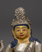 Silver Plated Sacred Lokeshvara Sculpture | Bodhisattva Copper Statue