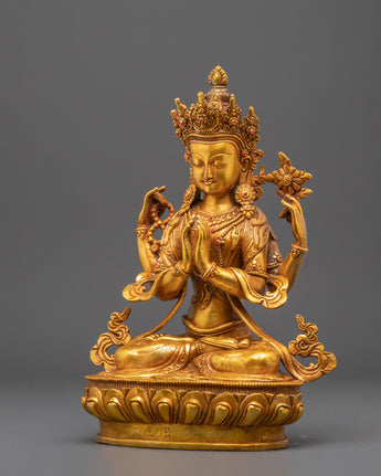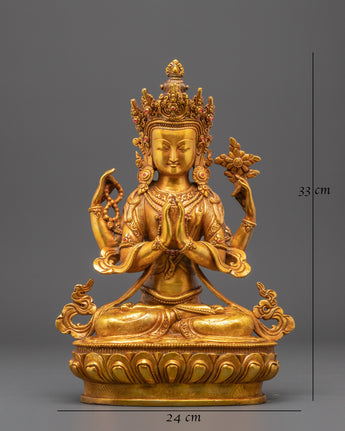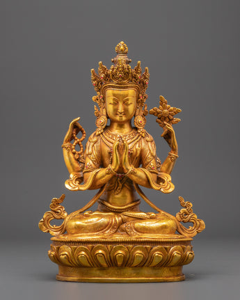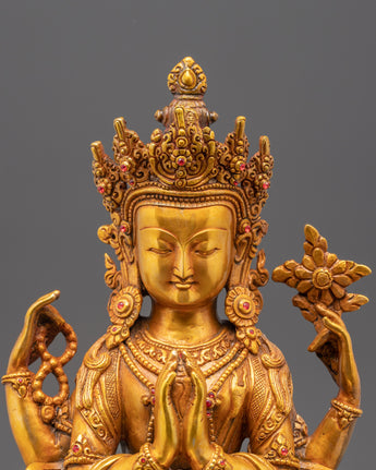 Handcrafted Tibetan Buddhist Chenrezig Sculpture | A Sacred Symbol of Compassion and Peace