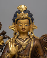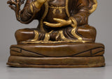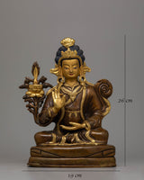 This statue of Manjushri, who is regarded as the personification of wisdom, is masterfully crafted and has fine detail. Every feature of this bodhisattva—from the calm countenance to the elaborate garments—reflects the enlightened attributes linked with it. A hint of divine light is added by the 24k gold plating, which symbolizes the transcendental wisdom that Manjushri stands for.