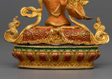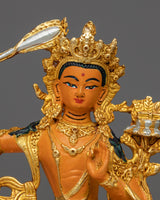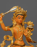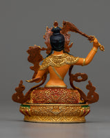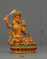 The beautiful Tiny Manjushri Sculpture is a compact symbol of supreme wisdom and understanding. This magnificent sculpture is machine-made, so each component is precise and homogeneous. It combines traditional workmanship and modern production techniques with a strong copper body and beautiful gold and acrylic paintings. Despite its small size, this sculpture captures the grandeur and majesty of Manjushri, the Bodhisattva of Wisdom, and is an excellent gift for individuals who value Buddhist teachings and philosophy.