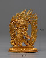 Introducing the exquisitely made Vajrapani Buddha Statue, a divine representation of strength and enlightenment for those who seek spiritual fulfillment. At about 7 cm in height, this tiny masterpiece is the ideal complement to any home shrine or hallowed area. The statue's machine-made copper body, expertly crafted to ensure endurance, perfectly captures the essence of Vajrapani's commanding presence.