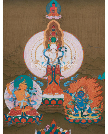 In response to his plight, Amitābha Buddha granted him eleven heads to hear the cries of the suffering. As Avalokiteśvara reached out to aid, his arms fragmented into a thousand pieces. Still, once again, Amitābha intervened by bestowing upon him a thousand arms to alleviate his suffering. Like many other stories, this one underscores Bodhisattvas's boundless compassion and unwavering commitment. It is believed that by venerating and emulating these enlightened beings, individuals can cultivate similar qualities and progress toward enlightenment.