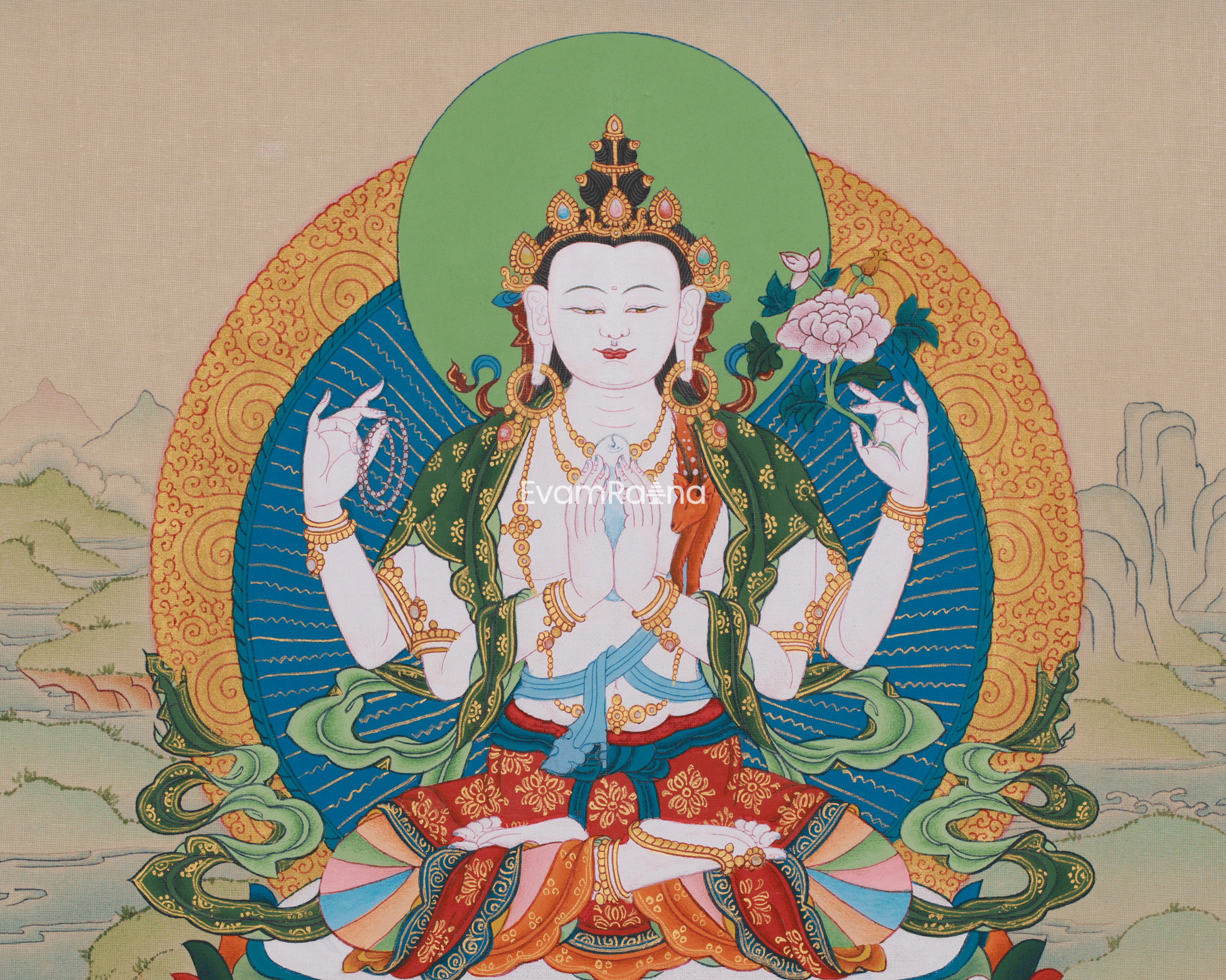 Four-Arms Avalokiteshvara Artwork | The Bodhisattva of Mercy, Compassion & Spiritual Healing