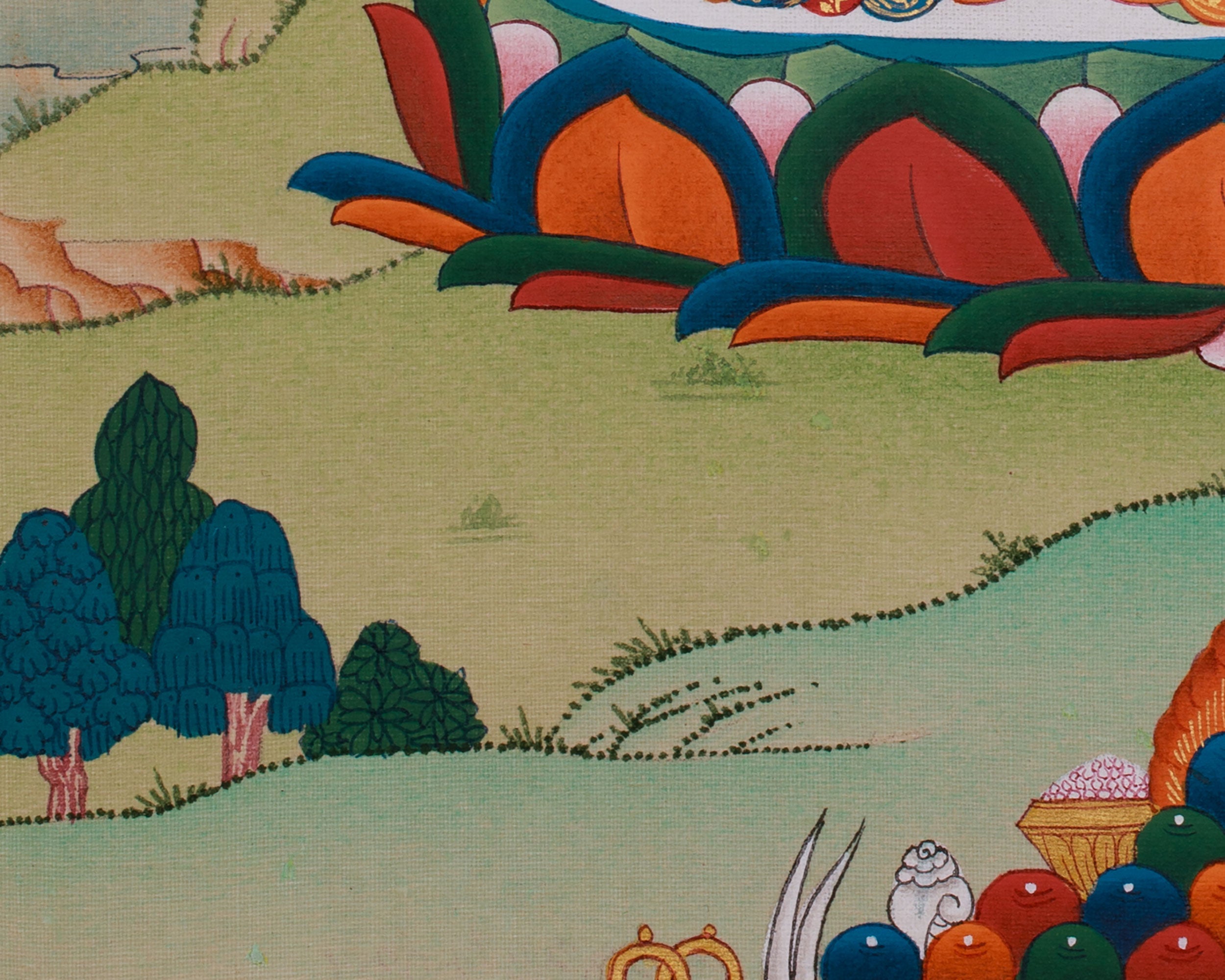 - Regularly inspect your thangka; examine the borders and all attachments.