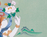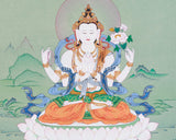 13 Inch Tibetan Bodhisattva Chenrezig Painting | Deity of Mercy, Healing & Spiritual Guidance