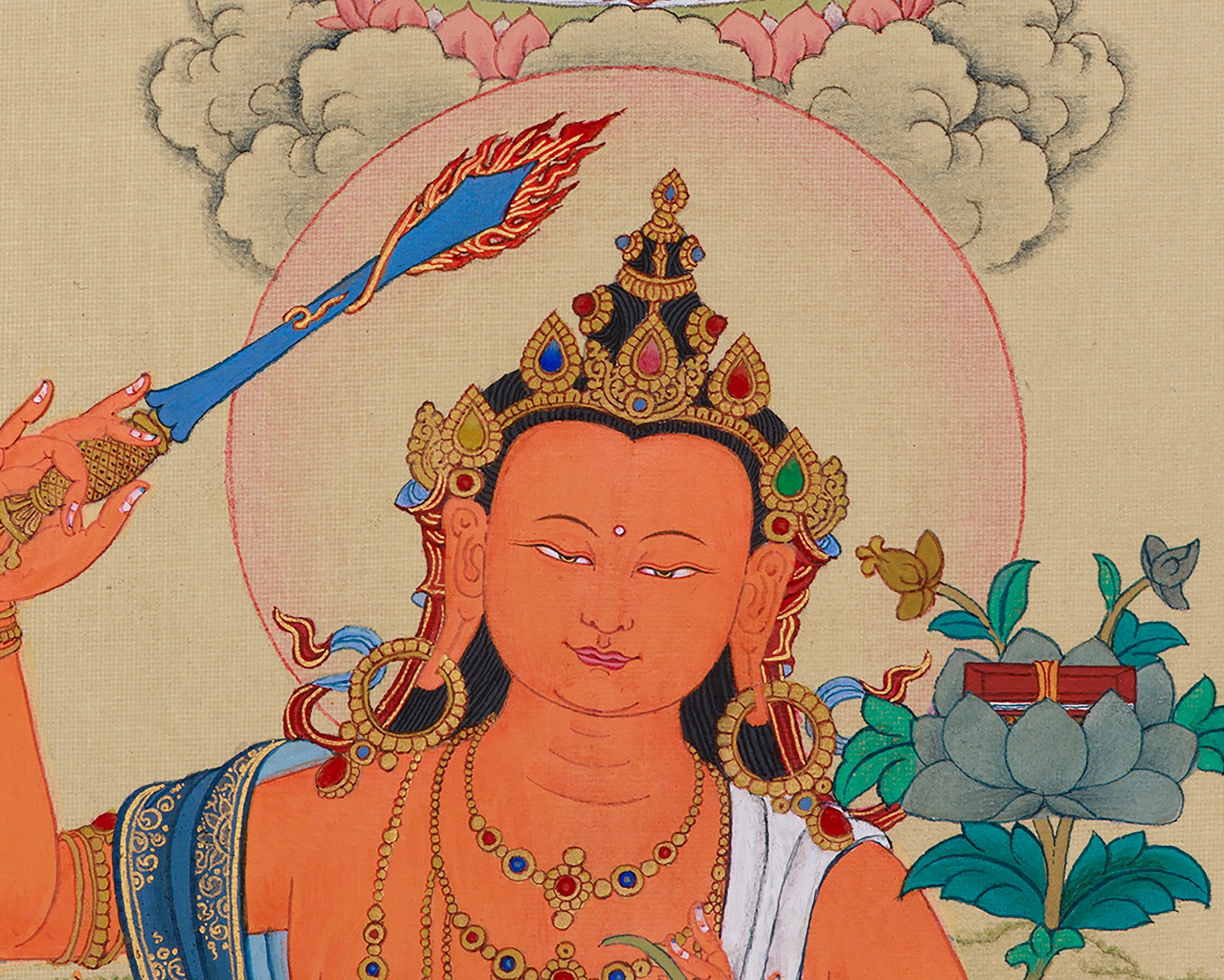 Traditional Manjushri With Mitrupa Thangka | A Gateway to Insight
