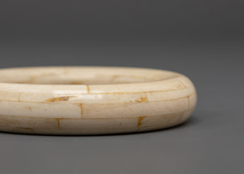 This Ethically Sourced Camel Bone Bangle, created from meticulously harvested camel bone, exudes natural elegance. The bangle's smooth surface and gentle creamy tones highlight the distinctive characteristics of the genuine bone, making it a modest yet eye-catching accent to any outfit. Each piece features unique patterns, making your accessory totally one-of-a-kind.