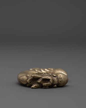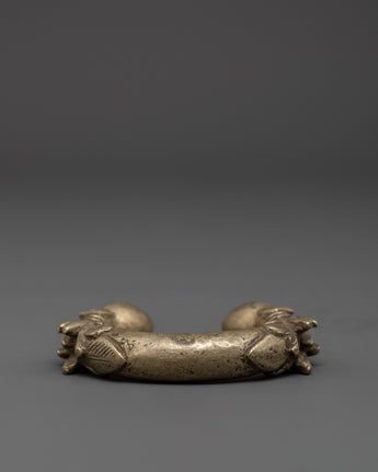 The surface design includes intricate sculptural elements that evoke natural symbolism, as seen in cultural artifacts. Its open cuff design easily fits most wrist sizes, and the silver finish adds a faint metallic shine that accentuates the rustic charm. This bracelet, whether worn every day or on important spiritual or cultural occasions, communicates a tale about heritage, craftsmanship, and identity.
