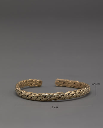 Our Handmade Braided Bracelet is a distinctive artisan creation that blends elegance with meaningful symbolism. Meticulously woven by hand, this bracelet showcases the timeless art of braiding, a design revered for representing unity, strength, and connection. Designed to suit both men and women, its adjustable cuff style ensures a perfect fit while its warm brass tone lends a subtle yet captivating glow. Measuring 0.5cm in height, 7cm in width, and 5.7cm in diameter, it offers lightweight comfort at just 0.028kg, making it ideal for daily wear.