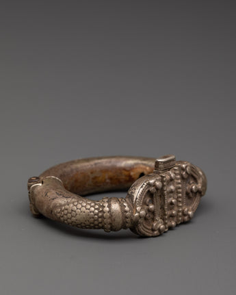 Expertly crafted by skilled Himalayan artisans, the bracelet’s detailed carvings reflect a rich heritage of spiritual and cultural symbolism. The silver plating enhances its shine while preserving the intricate patterns, making it not only a piece of jewelry but also a statement of connection to tradition. Perfect as a personal adornment or a meaningful gift, this cuff embodies the essence of handcrafted beauty.