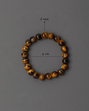 This Tiger Eye Bracelet is a stunning accessory that will enhance your personal style. This bracelet has finely polished 8mm Tiger Eye beads in golden brown and deep amber, making it a magnificent piece of jewelry. With a diameter of 4cm and a height of 6.5cm, it fits securely around the wrist and adds a sleek and delicate addition to any ensemble. Whether you're dressed up for a special occasion or want to add a touch of sophistication to your everyday outfit, this bracelet strikes the ideal combination of elegance and strength.