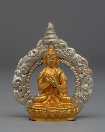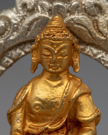 Beautifully constructed from copper and finished with electro gold plating, the Five Buddhas Statue is a work of art. This 0.89 kg statue has five different Buddhas on it, all of which are exquisitely crafted and have an opulent gold finish. The representation of these respected people is given a touch of elegance and devotion by the electrogold plating, which intensifies the statue's luminosity.