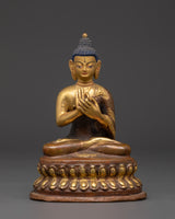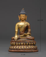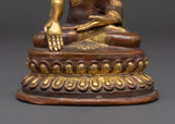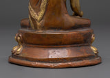 Buddha's spiritual essence is enlightenment, wisdom, compassion, and peace. The gold plating creates a bright, auspicious light that draws blessings and good vibes into your environment, while the oxidized copper body offers a rich, textured feel. This five-Buddha statue set is a potent reminder of awareness and spiritual development, whether you are a dedicated practitioner or looking for a thoughtful present. It skillfully combines traditional craftsmanship with contemporary spiritual demands.