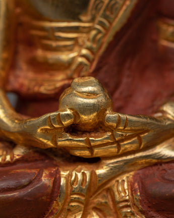 We are proud to present our Three Buddha Statue, a magnificent combination of artisanal skill and spiritual symbolism. Each statue in this set is handcrafted on a copper body and then gilded with 24k gold, resulting in a magnificent display of devotion and artistry. The statues' aesthetic and spiritual significance are enhanced by the golden sheen, which also lends a hint of divinity.