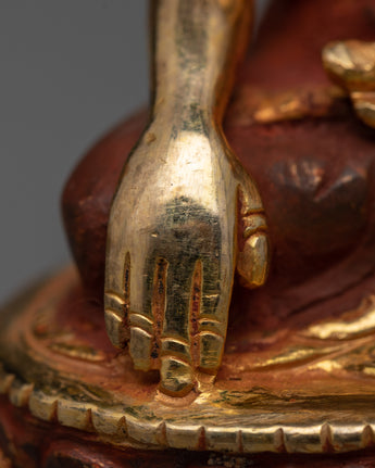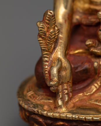 Medicine Buddha, also known as Bhaishajyaguru in Sanskrit, is regarded as the Buddha of Healing. His teachings aim to free sentient beings from sickness, pain, anguish, and unhappiness while emphasizing the need for prosperity and enjoyment in this life. Many meditators in the Mahayana tradition admire his healing abilities. He is frequently shown with a blue (lapis lazuli) body and hands carrying a begging bowl and medical herbs.
