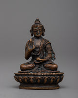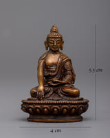 With the Tibetan Five Dhyani Buddhas set, you may delve into the profound symbolism of Tibetan Buddhism. This collection of sacred sculptures is beautifully made for spiritual contemplation. Each statue in this set is machine-made with oxidized copper bodies, assuring longevity while maintaining a traditional look. Standing at 5.5 cm in height and 4 cm in breadth, the set weighs 0.35 kg and is ideal for personal altars or meditation places.