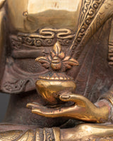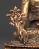Medicine Buddha, also known as Bhaishajyaguru in Sanskrit, is regarded as the Buddha of Healing. His teachings aim to liberate sentient beings from sickness, pain, anguish, and unhappiness, while emphasizing the importance of prosperity and enjoyment in this life. Many meditators in the Mahayana tradition admire his healing abilities. He is frequently shown with a blue (lapis lazuli) body and hands carrying a begging bowl and medical herbs.