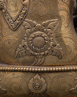 Discover the holy power of the Tibetan Three Buddha Set with this stunning trio of handcrafted brass figurines. This spiritual collection features the tranquil Shakyamuni Buddha, the loving Amitabha Buddha, and the healing Medicine Buddha, all of which have been expertly crafted to enhance your meditation, awareness, and spiritual practices. These gorgeous figurines are ideal for displaying in your home shrine, meditation space, or spiritual altar to promote serenity and divine energy. Each statue measures 21.5 cm in height and 15.5 cm in breadth, providing an ideal combination of size and elegance for any room.