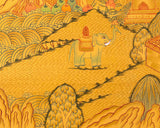Crafted with an exceptional display of artisanship, each of the 35 Buddhas is meticulously rendered with intricate precision and adorned tastefully with delicate 24K gold embellishments. These embellishments not only accentuate the divine presence of the Buddhas but also symbolize the purity and sanctity associated with their enlightened wisdom. The harmonious blend of rich, vivid hues and opulent gold accents combines to create a visual opus that resonates deeply with the core of spiritual rejuvenation.