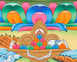 It goes without saying that every detail of a painting has a symbolic meaning. Regardless of your religious affiliation, a thangka can help you on your path to enlightenment, whether you practice Buddhism or have other religious convictions. Thangkas are paintings that depict deities with various iconographic elements and symbolism that encourage meditation on the teachings of the god they depict. Any thangka is intended to aid in the removal of the film of ignorance, which is a significant barrier to the road to enlightenment. The Thangka is revered as a holy item. They promote positivity, spread Buddhism's teachings, bring about peace, harmony, and oneness, and dispel any negative energy that may be there.