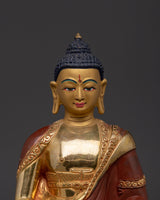 This Amitabha Buddha Home Handcrafted Decor Statue weighs 1.52 kg and stands 8.5”/21.5cm in height and 5.9”/15cm at the base. Made from copper with 24K gold gilding and detailed gold and acrylic paintings, it reflects Amitabha’s serene and compassionate nature as the Buddha of Infinite Light. Expertly handcrafted by skilled Nepali artisans, it brings a sacred presence to home altars, meditation areas, or personal spiritual corners.
