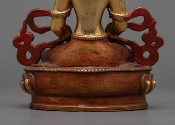 The Amitabha Buddha of Pure Land Statue stands as a radiant embodiment of enlightenment and spiritual liberation. This statue exudes a sense of divine elegance and peace. It was carefully crafted on a copper body and exquisitely embellished with 24k gold plating. Its 16.5-cm height makes it a potent representation of the Pure Land teachings, encouraging followers to strive for the domain of Amitabha Buddha's enlightened presence.